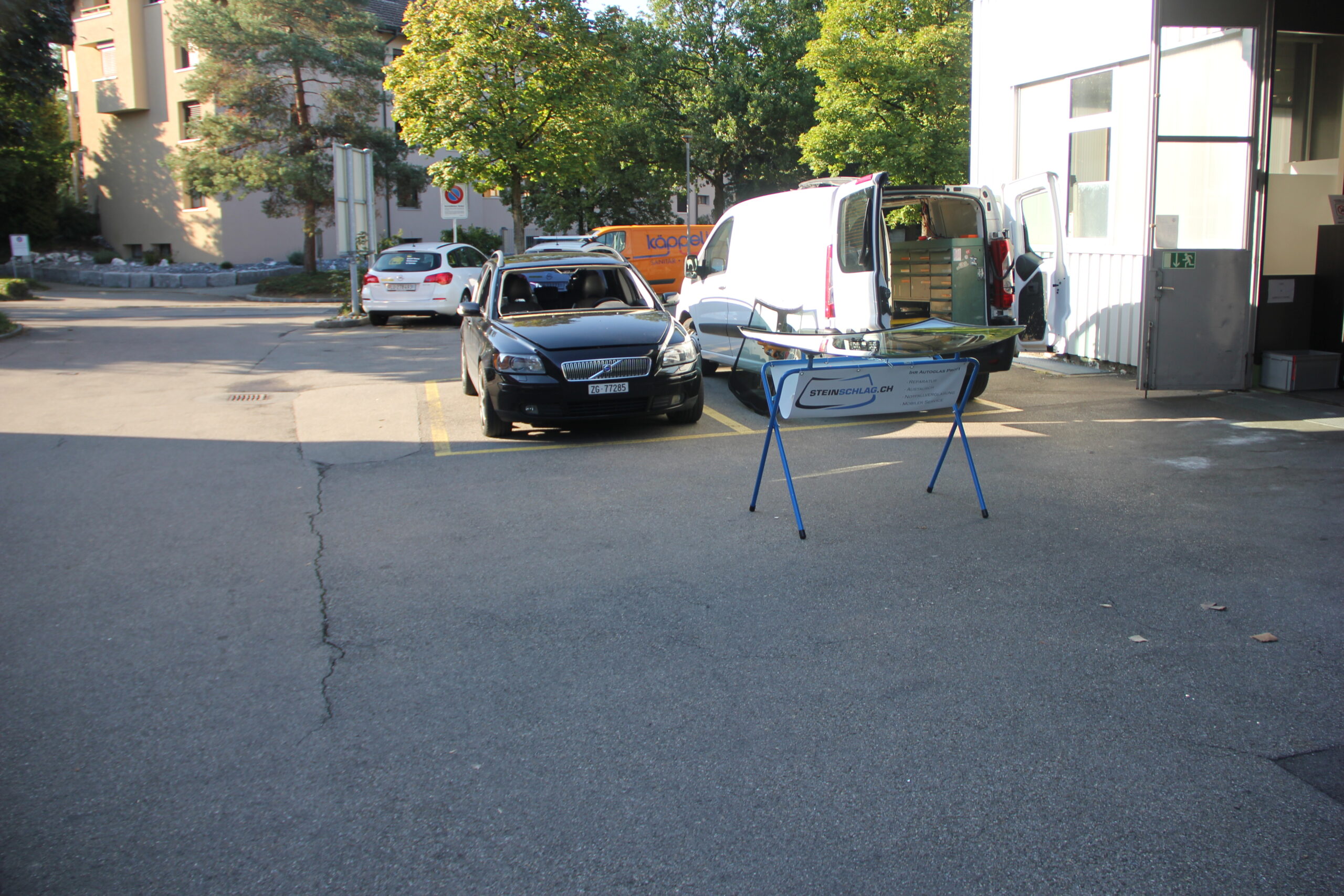 Der mobile Service von Steinschlag.ch ist wetterabhängig. Bei gutem Wetter genügt ein offener Parkplatz, bei schlechtem Wetter benötigen wir jedoch eine überdachte Fläche. Aber gemeinsam mit Ihnen finden wir immer einen passenden Ort.